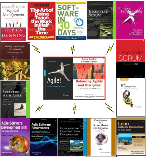 The best and edgiest writing in the book, which crisply separates it from its toned down (but still very good) peer, Boehm and Turner’s “Balancing Agility And Discipline“, is the way Mr. Meyer gives the agilencia a dose of its own medicine. Much like some of the brightest agile luminaries (e.g. Sutherland, Cohn, Beck, Jeffries, Larman, Cockburn, Poppendieck, Derby, Denning (sic)) relish villainizing any and all traditional technical and management practices in use before the rise of agilism, Mr. Meyer convincingly points out the considerable downsides of some of agile’s most cherished ideas:
