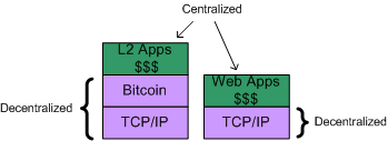 Startup investors, especially bankstas, expect a high ROI on their risky investments ASAP. Regarding Bitcoin, their investment returns can only come from centralized technologies, known as L2 tech, layered on top of Bitcoin. L2 technologies are to Bitcoin like web sites are to the TCP/IP protocol. That’s where real big money is made. By design, Blockstream is an L2 technology product company that must use the Bitcoin protocol to build on top of.