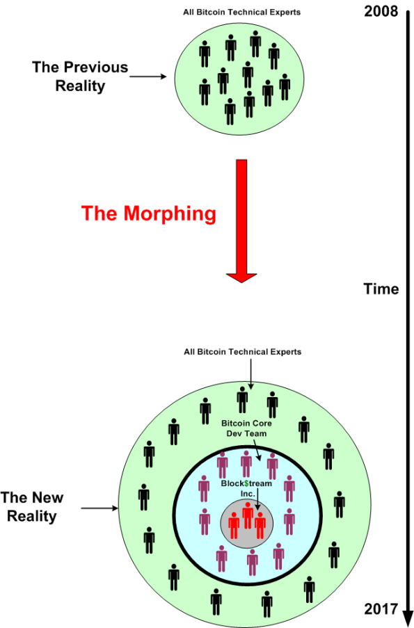 The caveat is this… Based on my observation of how the strategic trajectory of the protocol regarding future on chain scaling has been subtly distorted since the worst thing to ever happen to Bitcoin occurred (the insertion of Blockstream Inc. financial influence into the development team), I hope the whole “the Bitcoin Core software development team Is An Untainted, Decentralized group” potemkin village is destroyed and this particularly toxic special interest group, Blockstream Inc., is seen for what it is – a big, centralized, banksta in clever disguise.