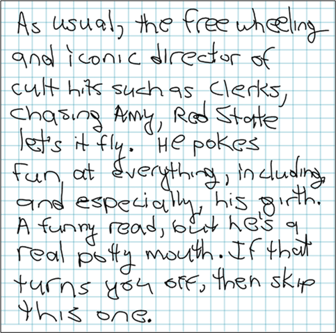 Kevin Smith’s “Tough Sh*t: Life Advice from a Fat, Lazy Slob Who Did Good” is the first lite and breezy book that I’ve read in quite a while.