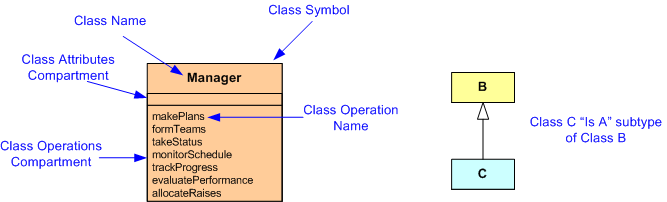 The following sparsely “bent” UML class diagram (see the end of this post for a quick and dorky tutorial for interpreting the diagram) exposes Bulldozer00’s internal hierarchy of manager types. Yours may be different, especially if you’re a manager.