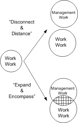 Is it even reasonable to ask for any overlap between work-work and management-work as one ascends higher up in a hierarchically structured CLORG? For example, in a 10 layer hierarchy, is it insane to expect the dudes in the upper echelons to know something, anything, about the nature of the work that goes on down in the boiler room?