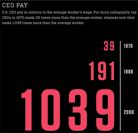 For instance, did you know that the average CEO’s pay is 1,039 times more generous than that of the average worker? And it’s not as if we’ve always lived that way. Forty years ago, CEOs were only being paid 39 times that of the average worker. Some companies these days are tying CEO pay to the pay of the least compensated employee at the same company. Clearly not that many.