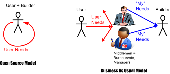 - The builders are also the users – there are no middlemen to screw up requirements interpretation between the users and builders.