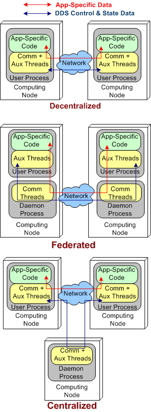 A colleague on LinkedIn.com pointed me toward this Doug Schmidt, et al, paper: “Evaluating Technologies for Tactical Information Management in Net-Centric Systems“. In it, Doug and crew qualitatively (scalability, availability, configurability) and quantitatively (latency, jitter) evaluate three different architectural implementations of the Object Management Group‘s (OMG) Data Distribution Service (DDS): centralized, federated, and decentralized.
