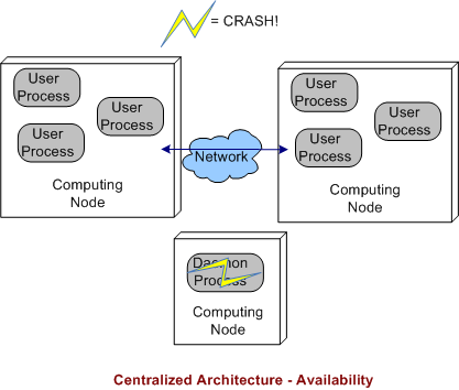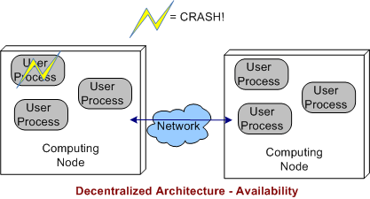 In a decentralized architecture, there are no invasive daemons that “leak” into the application plane so we can’t talk about daemon crashes. Thus, right off the bat we can “arguably” say that a decentralized architecture is more resistant to faults than the federated or centralized architectures.