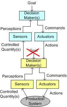 From the perspective of the production system, simply ignoring or misinterpreting the non-physical actions imposed on it by the actuators will severely degrade the decision maker’s ability to control the system. By withholding or distorting the state of the important “controlled quantities” crucial for effective decision making, the production system can thwart the ability of the decision maker(s) to observe and assess whether the goal is being sought after.