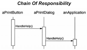 One of the well known design patterns in the object-oriented software world is named “Chain Of Responsibility“. The UML sequence diagram below shows an example of how the software objects in the pattern collaborate with each other in order to ensure that a user initiated help request is handled somewhere in the GUI of an application.