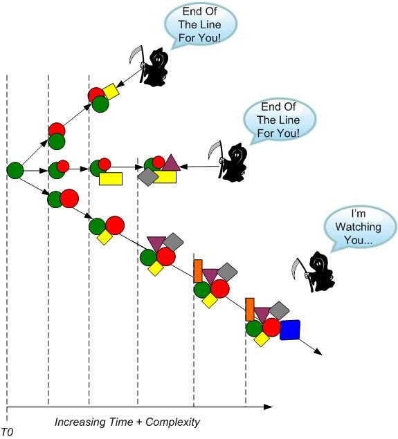 Emergent design works in nature because evolution has had the luxury of millions of years to get it “right“. Even so, according to angry atheist Richard Dawkins, approximately 99% of all “deployed” species have gone extinct – that’s a lot of failed projects. In software development efforts, we don’t have the luxury of million year schedules or the patience for endless, random tinkering.