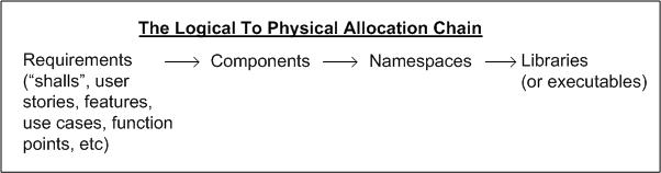 Regardless of which methodology you use to develop software, the following technical allocation chain must occur to arrive at working source code from some form of requirements: