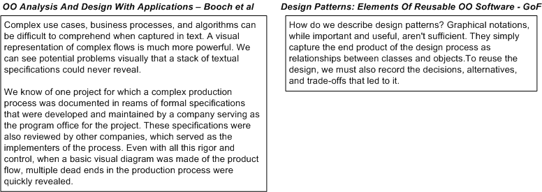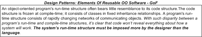 On the left, we have words of wisdom from Grady Booch and friends. On the right, we have sage advice hatched from the “gang of four“. So, who’s right?