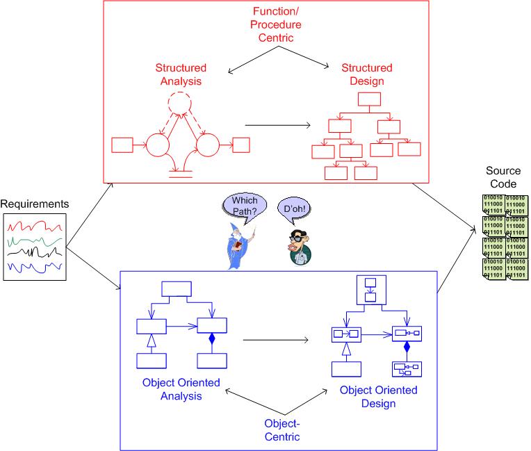 Please peruse the graphic below and then answer these questions for BD00: Is it a forgone conclusion that object-oriented development is the higher quality path from requirements to source code for all software-intensive applications? Has object-oriented development transitioned over time from a heresy into a dogma?