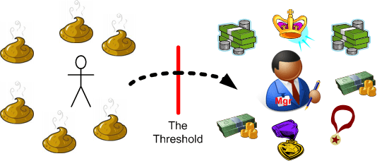 The less scrutinized and harder-to-directly-measure system element, “efficient execution”, is a more subtle system buster. Crappy BMs who don’t (cuz they’re lazy or apathetic)) or can’t (because they’re incompetent) directly recognize efficient execution as a system buster take the easy way out by solely measuring profit as an indicator of execution performance. When profit declines, BMs thrash about because they’re at least one level of indirection away from where the rubber meets the road – execution. Since they’re out of touch, BMs make “suboptimal” decisions and issue ineffective mandates that actually accelerate the downward spiral in profits. Good leaders either directly evaluate execution efficiency according to their previous experience or they rely on frequently solicited feedback from those directly executing the work.