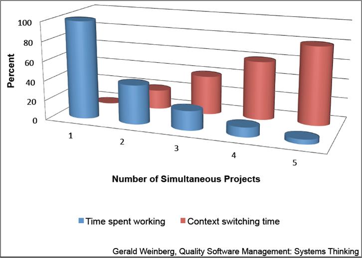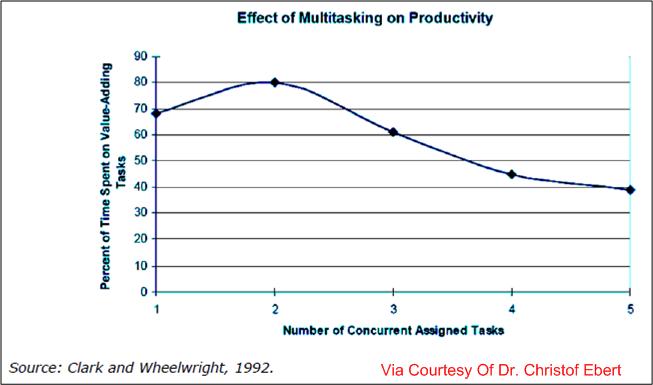 The best graphic I’ve ever seen on the inefficiency of multitasking comes via one of my long-time mentors from afar, Mr. Gerry Weinberg.