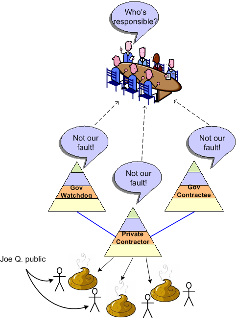 In addition, the “esteemed” government watchdog agencies (e.g. SEC and FDA and EPA) responsible for ensuring that contractors don’t perpetuate gargantuan disasters make up all kinds of excuses for not detecting the incompetence before massive stakeholder damage has been manifest (lost money, lost lives, lost livelihoods). They do this, of course, because these dudes don’t want to look incompetently asleep at the wheel either.