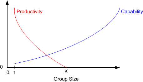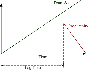 In deference to Fred Brooks‘s “adding more people to a late project makes it later“, I present you with the enhanced version: “adding more people to a late project makes it later, and at some critical size K, adding more people makes it infinitely late“.