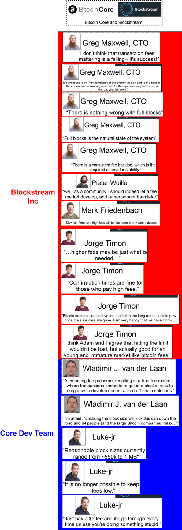 Blockstream Inc. + Key Bitcoin Core Software Development Team Contributors: High transaction fees, long confirmation times, and network congestion due to chronically full blocks are good for Bitcoin.