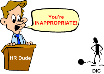 In dysfunctional CCHs, one of the primary functions of HR departments is to police the behavior of the DICforce. Thus, since they’ve been “approved” by the corpocracy to inject fear into non-conformers and rabble rousers, they’re the final arbiter of what’s deemed “inappropriate”. When someone “reports” (a.k.a rats out) someone to HR, the group happily kicks into action to assess the allegation. Unlike the drawn out investigation that occurs when a DIC rats out another DIC, the verdict of “inappropriate” is always certain when a manager rats on a DIC. You see, since HR is an integral member of the management guild and it gets paid by its brethren, it does whatever is best for management – which may not be best for the company as a whole.