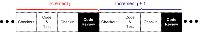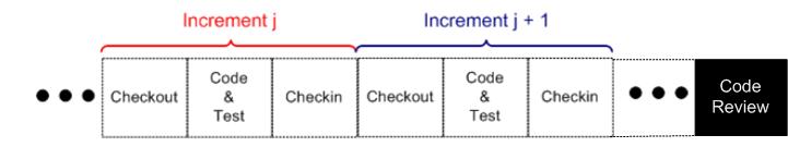 Finally, in an iterative and incremental development process, when should code reviews take place? Piece-meal and disruptively after checking in each increment’s unit-tested code? In one big, formal she-bang after all the unit tests have passed?