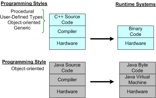 Regarding program performance (<- ya gotta check this interactive site out), there’s “virtually” no way that a Java program running on top of an overhead “middleman” virtual machine can be faster than native code running on the same CPU hardware. Of course, there can be the rare exception where a crappy C++ compiler is pitted against a highly optimized (and over-hyped), “JIT” Java compiler .