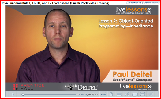 In parallel to the in-house class, I’m also taking an online Java video course taught by Paul Deitel in the comfort of my home. The 36 hour course is available to me through my pricey (but outstanding) safaribooksonline subscription: