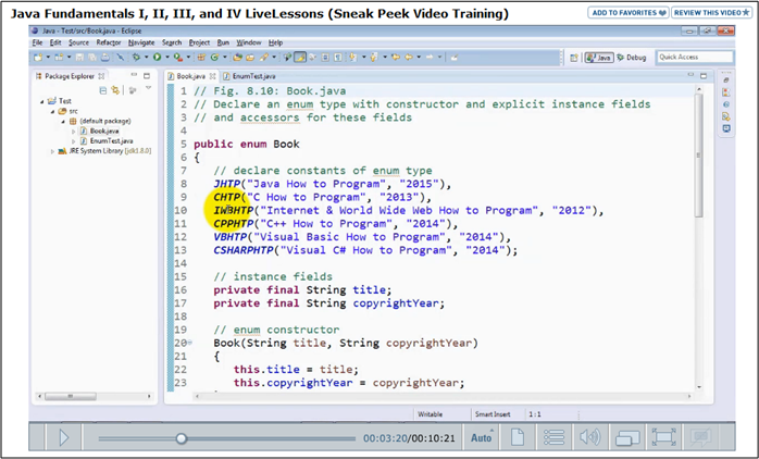 Other than in the lesson video intros (e.g. the one above), you never see Mr. Deitel on the screen. Like many educational videos you can watch for free on YouTube and Kahn Academy, you see code and a yellow circle highlighter that Paul dynamically steers around the screen as he explains what the code is doing.
