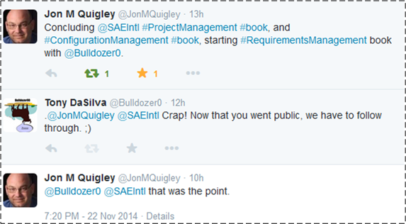 As you can see, my new found friend, multi-book author Jon M. Quigley (check out his books at Value Transformation LLC), proposed, and I accepted, a collaborative effort to write a book on the topic of product requirements. D’oh!