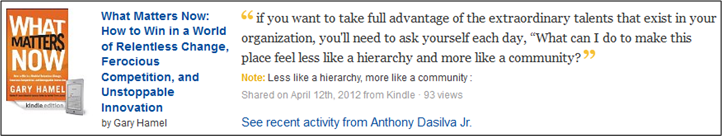 HCL Technologies CEO Vineet Nayar‘s “Employees First, Customers Second” is one of the most refreshing business books I’ve read in awhile. One of the bold measures the HCLT leadership team considered implementing to meet their goal of “increasing trust through transparency” was to put up an intranet web site called “U & I“. After weighing the pros and (considerable) cons, the HCLT leadership team decided to go for it. Sure enough, the naysayers (Vineet calls naysayers the “Yes, But“s) were right: