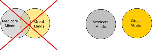 Something tells me that this is an ironic twist on the cliche that “great minds think alike“. Great minds think alike, but so do mediocre minds. It’s just that on matters of importance, great minds don’t think like mediocre minds. D’oh!