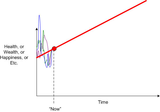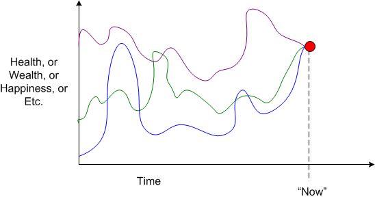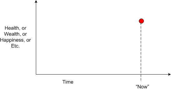 Make a measurement, one measurement, of any personal metric you might fancy… right now. Next, plot your sample point on a graph where time is the independent variable on the x-axis: