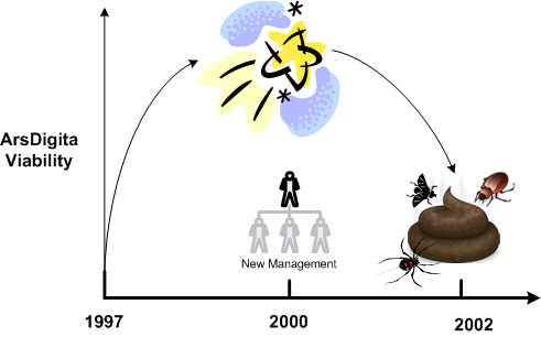 Upon observing the deterioration of his original ArsDigita product under the so-called leadership of “new management”, Philip Greenspun said:
