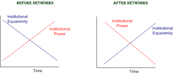 First there was the industrial revolution, then the information revolution, and now the network revolution. Spontaneous, rapidly forming, and self-organizing networks are popping up everywhere to expose dishonesty, unfairness, and corruption where power is concentrated in the hands of a few self-important fatheads. Look at Wikileaks, the Iranian election, and more recently, Egypt and Tunisia-fish. Networks are slooowly forcing bozeltines, against their gold-plated wills, of course, to behave more honestly and equitably. Who knows, maybe man’s inhumanity to man will be eradicated some day and networks will have played a key role in its demise? Prolly not in my lifetime, but maybe in yours.