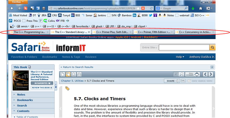 As you can hopefully make out, I have five Firefox tabs open to the following C++11 programming books: