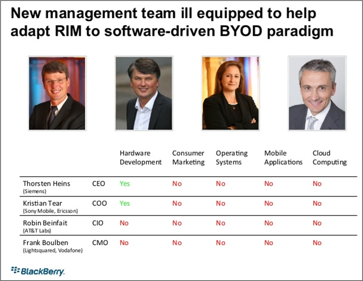 - Jim Basillie & Mike Lazardis: current co-CEOs of RIM