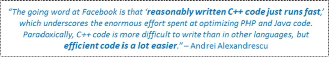 I love paradoxes because they twist the logical mind into submission to the cosmos. Thus, I’m gonna leave you with this applicable quote (snipped from Herb’s presentation) by C++ expert and D language co-creator Andrei Alexandrescu: