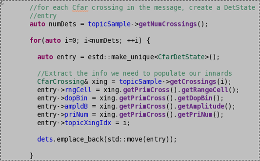 Since each “entry” CfarDetState object must be uniquely intialized form it’s associated CfarCrossing object, I can’t simply insert estd::make_unique<CfarDetState>() into the emplace_back() function. All of the members of each “entry” must be initialized first. Regardless of whether I use emplace_back() or push_back(), std::move(entry) must be used as the argument of the chosen function.