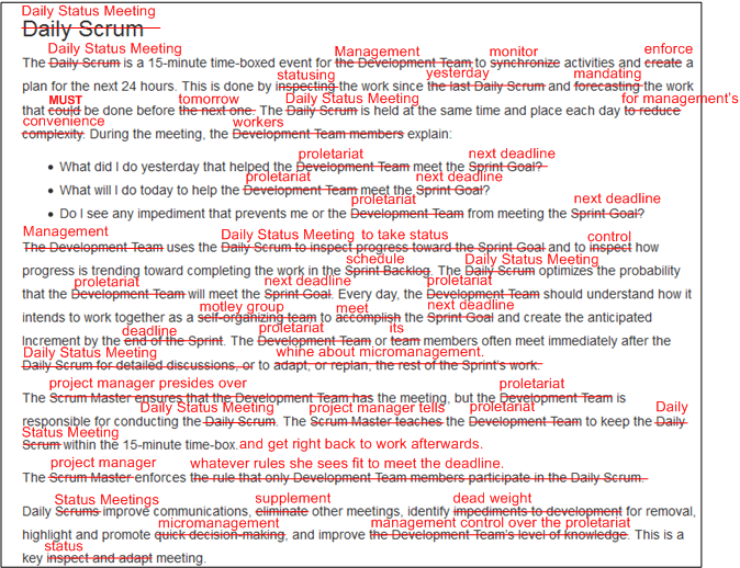 Here’s how a Theory-X indoctrinated manager interprets the definition of the Daily Scrum as written in the official Scrum Guide: