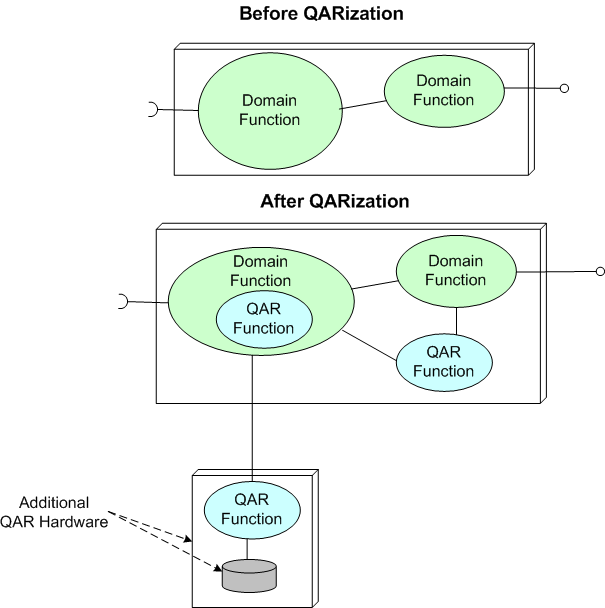 As the figure below illustrates, the “QARization” of a system can substantially increase its design and development costs. In addition, since the value added from weaving in any extra QAR software and hardware is mostly hidden under the covers to users and only becomes visible when the system gets stressed during operation, QARs are often (purposely?) neglected by financial sponsors, customers, users, AND developers. Stakeholders typically want the benefits without having to formally specify the details or having to pay the development and testing costs.