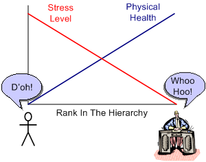 It all comes down to “control“. If you believe (like BD00 does) in William T. Powers’ Perceptual Control Theory (that every living being is an aggregation of thousands of little control systems interconnected for the purpose of achieving prosperous survival), then the results make sense. It’s simply that people in the higher ranks have more “control” over their environment than those below them.