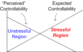 As can be inferred from the diagram, there are at least two ways to increase one’s “unstressful” region while decreasing one’s “stressful” region. Reduce expectations or increase perceived controllability. A better way is to realize the truth of the matter – there is no controllability, there’s only the ability to influence.