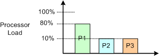 One approach is to dive into the algorithmic details of the P1 CPU hog and explore parallelization options for the beast. Assume that we are lucky and we discover that we are able to divide and conquer the P1 oinker into 5 equi-hungry sub-algorithms as shown below. In this case, assuming that we can allocate each process to its own CPU (multi-core or separate boxes), then we may be done solving the problem at the application layer. No?