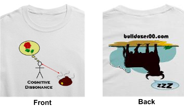 The writers of the first 2 “substantive” comments that BD00 receives will get a gratis copy of the notoriously famous “Cog Diss” T-shirt to wear in shame: