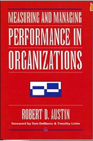 Even though it has a title and cover design that only a Harvard MBA could love, I picked up Robert Austin’s “Measuring and Managing Performance in Organizations” on a twitter tip from Torbjörn Gyllebring. As soon as I cracked the cover, I knew it was gonna be a classic. The foreword was written by one of my all time favorite software authors, Tom DeMarco.