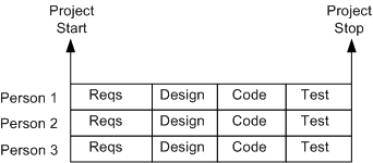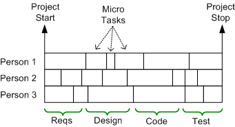 A more insidious, micro-grained, version of this waterboarding fiasco is shown below. It’s a self-medicating attempt to amplify the illusion of control that’s envisioned to take place throughout the execution of the project. Since schedules are concocted before an architecture or design has been reasonably sketched out and no one can possibly know up front what all the micro tasks are, let alone how long they’ll take (unless the project is to dig ditches), it’s monstrously wrong too. But shush, don’t say a word.