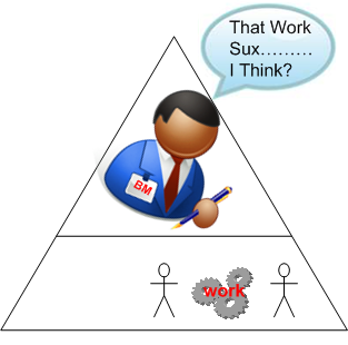 Ironically, because of the hierarchical mindset ingrained into all members of a DYSCO, and even though bad managers don’t have to worry about being tarred and feathered by the DICforce, most managers at the workface are incapable of asking the tough questions. Watts Humphrey summarizes this managerial shortcoming nicely: