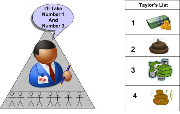 “Heartily cooperate“? “Equal division of work“?”Management takes over all work for which they are better fitted“? WTF? Uh, it seems like Tayloristic managers today (and of course, not all managers fit this bill) have only embraced the non-yucky, self-serving parts of Mr. Taylor’s teaching. They’ve conveniently thrown out the baby with the bath water, no?