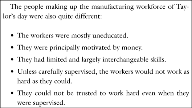 In “Leadership, Teamwork, and Trust: Building a Competitive Software Capability“, Watts describes the unquestioned assumptions made by managers regarding workers back in the ole’ days when Frederick Taylor’s scientific management methods were king: