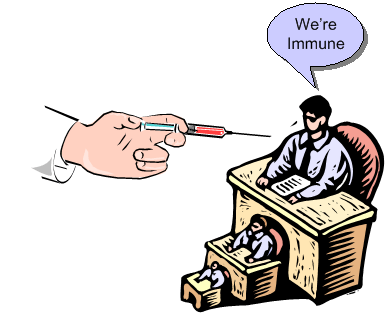 In a culture of blame, and its Siamese twin, fear, any non-manager group member who consistently asks tough questions and points out shoddy, incomplete, ambiguous work becomes a group target for retribution. This defensive peer group behavior is a natural response to redirect attention away from the stank and to squelch criticism. The funny thing is, managers in CCHs are given a free pass to ask tough questions and criticize without fear of retribution. It helps that managers don’t produce any work products that can be scrutinized by DICsters – if they wanted to. Even if managers did pitch in by leading by example, most DICkies wouldn’t point out flaws because of……. fear of downstream retribution.